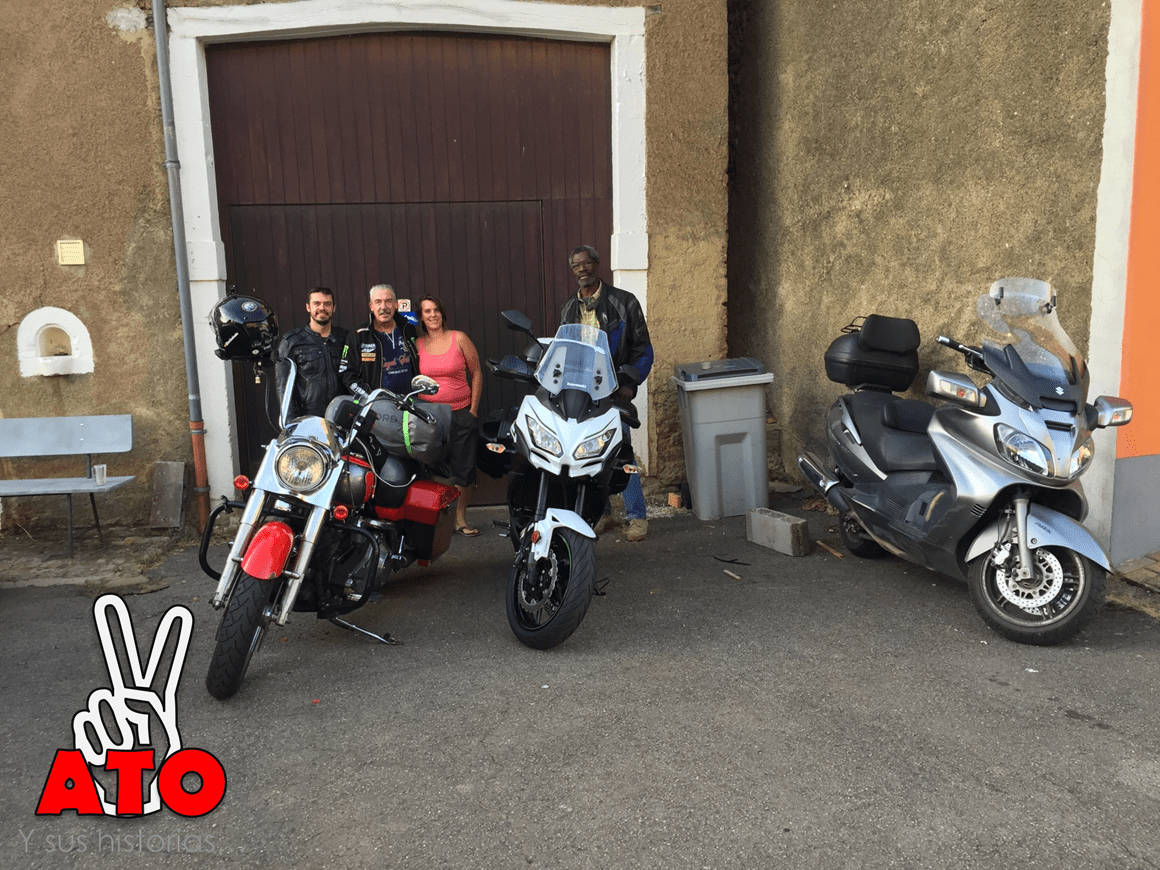 Vincent y Éric son belgas, están haciendo el rodaje de la moto de Éric durante el fin de semana y es la primera vez que la saca por ahí. 300 kms tiene sólamente. Me preguntan sobre mi viaje y qué hacía ahí parado, a lo que les contesto que buscar algún sitio donde dormir. No duda ni un momento Vincent, ni siquiera pregunta a Éric y me dice que van de camino a la casa del hijo de Éric, que allí siempre hay sitio y que si no me importa dormir ahí que estoy más que invitado. Le sonrío, pues me han salvado el día, y descarto la opción que más cercana tenía en la mente y era volver a casa de Michel y quedarme con él, como me había ofrecido. Van sin GPS y no tienen muy claro cómo llegar así que ponemos la dirección de la casa en mi móvil y hago de jefe de ruta los próximos 40 minutos. Llegamos a Battincourt y desde el primer momento me siento querido, como en casa. Se preocupan sobre qué quiero, si necesito cualquier cosa y sólamente acepto una cerveza compensatoria por todos estos días. Me indican que el hijo y su mujer (Eric y Vaness) van a una fiesta esta noche y que ellos tienen que ir pero que si me apetece, y contesto afirmativamente. Así que con el coche de Vaness nos dirigimos a un pueblo cercano, que como todos los de la zona son de unos 1.000 habitantes y allí nos encontramos en la casa de Valérian. Todos me tratan estupéndamente y me ofrecen su casa para el futuro. Todos son gente de mi edad que como en toda la comarca, trabajan diariamente en Luxemburgo pero viven en Bélgica. Especialmente Nathan, veo que está muy atento de mí al ver que yo no hablo francés. Entre medias Los tres moteros nos vamos a cenar a un Kebab, lo único abierto en el pueblo que sirviera comida, y a la hora de pagar les digo que esta va de mi cuenta. Se ofenden, «si invito a alguien le invito a todo» me dice Vincent, que es originario del Congo y yerno de Éric, cosa que me entero durante la cena. Tienen muy claro el concepto de hospitalidad, y me dice, guárdate tu dinero para hacer más kilómetros. Los tres terminamos la fiesta, a lo belga, rápido y nos vamos a dormir.